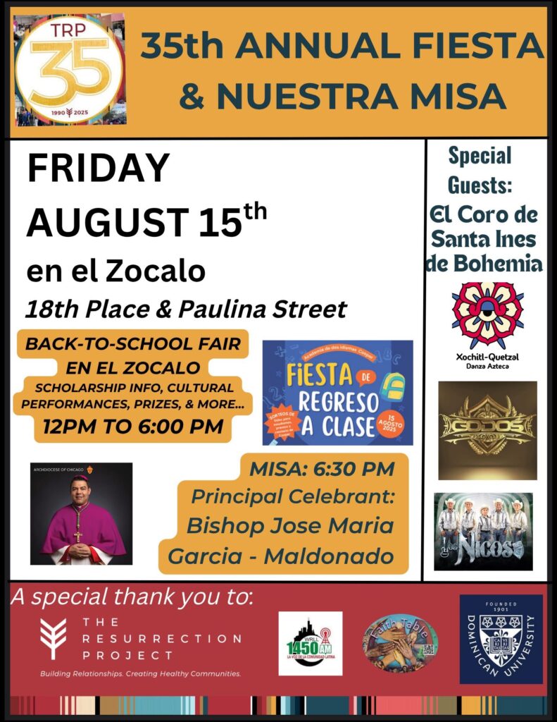 - Lugar: Salón Parroquial de San Pío V (1901 S. Ashland Ave)